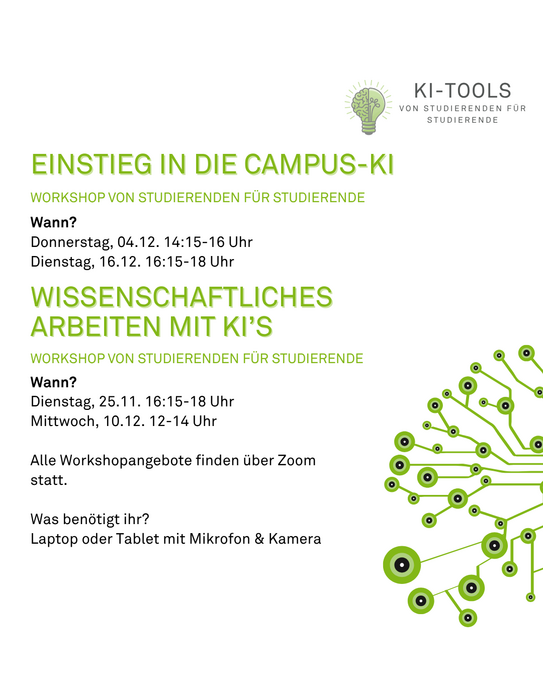 • Wissenschaftliches Arbeiten mit KI's - KI effizient im Studienalltag nutzen, z. B. für Recherche & Textarbeit